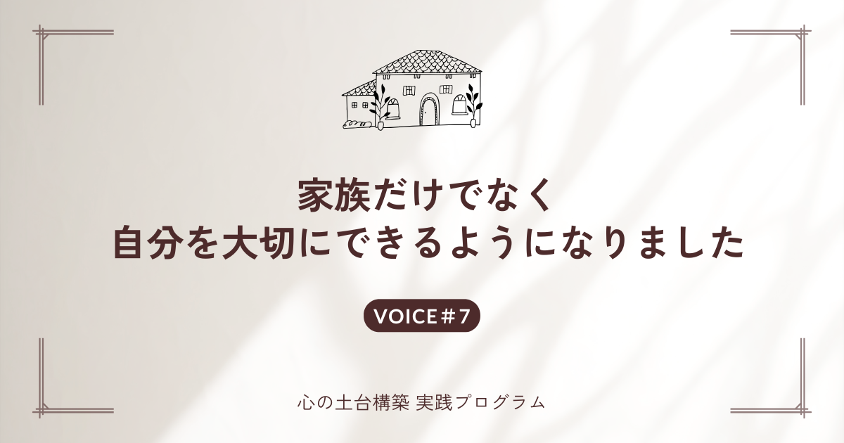自分自身と向き合い、心の土台を育て直す中で、怒りの奥に隠れていた“悲しみ”や“孤独”に気づき、自分を受け入れる力を取り戻していかれました。